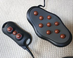2分で脊椎(せきつい)をスキャンし、その人に最もふさわしいプログラムを自動で提供する。ベッド内蔵のローラーが上下しつつ動き、脊椎を整える。動作の強さは9段階から選択でき、腰痛や内臓の不調など症状に応じてコースを選べる。V4にはヒスイや黄土を用いたバイブレーターの腹部用(写真左下の右)とハンディー用(同左)も付属し、加熱・振動して心地良い刺激を与える。内臓や気になる場所を温めつつゆっくり過ごせる。