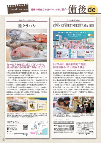 %u3000%u300cOPEN STREET FUKUYAMA 2025%u300d%u304c9%u670827%u30fb28%u65e5%u3001JR%u798f%u5c71%u99c5%u5468%u8fba%u306e%u6b69%u9053%u3084%u5546%u696d%u65bd%u8a2d%uff08%u798f%u5c71%u5929%u6e80%u5c4b%u3001%u3055%u3093%u3059%u3066%u798f%u5c71%u306a%u3069%uff09%u3067%u958b%u50ac%u3055%u308c%u308b%u3002%u53c2%u52a0%u7121%u6599%u3002%u96d1%u8ca8%u3084%u30b0%u30eb%u30e1%u306e%u51fa%u5e97%u3001%u30ef%u30fc%u30af%u30b7%u30e7%u30c3%u30d7%u3084%u6d88%u9632%u8eca%u306e%u5c55%u793a%u306a%u3069%u591a%u5f69%u306a%u30a4%u30d9%u30f3%u30c8%u3092%u5b9f%u65bd%u300210%u56de%u76ee%u306e%u958b%u50ac%u3092%u8a18%u5ff5%u3057%u3001%u798f%u5c71%u99c5%u5357%u5e83%u5834%u3067%u6620%u753b%u4e0a%u6620%u4f1a%u3092%u884c%u3046%u3002%u4f5c%u54c1%u306f1970%u5e74%u516c%u958b%u3001%u5c71%u7530%u6d0b%u4e8c%u76e3%u7763%u306e%u300c%u5bb6%u65cf%u300d%uff08%u51fa%u6f14%uff0f%u500d%u8cde%u5343%u6075%u5b50%u3001%u7b20%u667a%u8846%u307b%u304b%uff09%u3002%u3000%u307e%u305f%u300c%u65b0%u2606%u307c%u3046%u3055%u3044%u30af%u30a8%u30b9%u30c8%u300d%u3068%u984c%u3057%u305f%u9632%u707d%u4f53%u9a13%u30a4%u30d9%u30f3%u30c8%u3092%u540c%u6642%u958b%u50ac%u3059%u308b%u3002%u9632%u707d%u30af%u30a4%u30ba%u3084%u30ef%u30fc%u30af%u30b7%u30e7%u30c3%u30d7%u3092%u901a%u3057%u3066%u3001%u89aa%u5b50%u3067%u9632%u707d%u306b%u3064%u3044%u3066%u697d%u3057%u304f%u5b66%u3079%u308b%u30a4%u30d9%u30f3%u30c8%u3002%u300c%u6bb5%u30dc%u30fc%u30eb%u30c8%u30a4%u30ec%u300d%u306e%u5b9f%u6f14%u3082%u4e88%u5b9a%u3057%u3066%u304a%u308a%u3001%u53c2%u52a0%u8005%u306b%u306f%u5148%u7740%u3067%u30aa%u30ea%u30b8%u30ca%u30eb%u30ea%u30e5%u30c3%u30af%u30b5%u30c3%u30af%u3092%u914d%u5e03%u3059%u308b%u3002%u5bb6%u65cf%u307f%u3093%u306a%u3067%u53c2%u52a0%u3057%u3066%u3001%u9632%u707d%u3092%u8003%u3048%u3066%u307f%u3066%u306f%uff1f9%u670827%u30fb28%u65e5%u3001%u798f%u5c71%u99c5%u5468%u8fba%u3067%u958b%u50ac%u3001%u9632%u707d%u4f53%u9a13%u30a4%u30d9%u30f3%u30c8%u3001%u6620%u753b%u4e0a%u6620%u3082%u3002%u25c6%u65e5%u6642%uff0f9%u670827%u65e511:00%uff5e21:00%u3000%u3000%u3000 9%u670828%u65e511:00%uff5e16:00%u25c6%u4f1a%u5834%uff0f%u798f%u5c71%u99c5%u5468%u8fba%u6b69%u9053%u3068%u5546%u696d%u65bd%u8a2d%u25c6%u554f%uff0f%u798f%u5c71%u99c5%u524d%u7b49%u6b69%u9053%u7a7a%u9593%u6d3b%u7528%u793e%u4f1a%u5b9f%u9a13%u5b9f%u884c%u59d4%u54e1%u4f1a%uff08%u4e8b%u52d9%u5c40:%u30a2%u30a4%u30cd%u30b9%u30d5%u30af%u30e4%u30de%u696d%u52d9%u672c%u90e8%uff09%u260e084%u30fb922%u30fb3388%uff08%u5e73%u65e59:00%uff5e17:00%uff09OPEN STREET FUKUYAMA 2025OPEN STREET FUKUYAMA 2025%u30a4%u30d9%u30f3%u30c8%u3092%u5b9f%u65bd%u3059%u308b%u5546%u696d%u65bd%u8a2d%u306f%u3001%u30a2%u30a4%u30cd%u30b9%u30d5%u30af%u30e4%u30de%u3001%u3055%u3093%u3059%u3066%u798f%u5c71%u3001%u798f%u5c71%u5929%u6e80%u5c4b%u3001NEWCASPA%u3001%u798f%u5c71%u30cb%u30e5%u30fc%u30ad%u30e3%u30c3%u30b9%u30eb%u30db%u30c6%u30eb%u306a%u3069%u3002%u30a4%u30d9%u30f3%u30c8%u306e%u8a73%u7d30%u306f%u3001%u30a2%u30a4%u30cd%u30b9%u30d5%u30af%u30e4%u30deHP%uff08QR%u30b3%u30fc%u30c9%uff09%u306b%u3066%u968f%u6642%u767a%u4fe1%u4e2d%u3002%u30a4%u30d9%u30f3%u30c8%u76db%u308a%u3060%u304f%u3055%u3093%uff01%u30aa%u30fc%u30d7%u30f3 %u30b9%u30c8%u30ea%u30fc%u30c8 %u30d5%u30af%u30e4%u30de%u30aa%u30fc%u30d7%u30f3 %u30b9%u30c8%u30ea%u30fc%u30c8 %u30d5%u30af%u30e4%u30de%u798f%u5c71%u99c5 %u3055%u3093%u3059%u3066%u30a2%u30a4%u30cd%u30b9%u30d5%u30af%u30e4%u30de%u30a8%u30b9%u30c8%u30d1%u30eb%u30af%u798f%u5c71%u5e02%u5f79%u6240 %u3082%u307f%u3058%u9280%u884c%u5929%u6e80%u5c4b%u30bb%u30d6%u30f3%u30a4%u30ec%u30d6%u30f3 %u30ed%u30fc%u30bd%u30f3%u30cb%u30e5%u30fc%u30ad%u30e3%u30c3%u30b9%u30eb%u30db%u30c6%u30eb%u4e09%u89d2%u516c%u5712NEWCASPAShop&Service %u5099%u5f8c%u306e%u7d20%u6575%u306a%u304a%u5e97%u30fb%u30a4%u30d9%u30f3%u30c8%u3092%u3054%u7d39%u4ecb %u5099%u5f8cde39%u3000%u798f%u5c71%u5730%u65b9%u5378%u58f2%u5e02%u5834%u3067%u5e02%u5834%u3092%u904b%u55b6%u3059%u308b%u30af%u30e9%u30cf%u30b7%u3002%u30d7%u30ed%u306e%u76ee%u5229%u304d%u529b%u3068%u6c34%u7523%u6d41%u901a%u306b%u95a2%u3059%u308b%u8c4a%u5bcc%u306a%u7d4c%u9a13%u3092%u751f%u304b%u3057%u3066%u3001%u4e00%u822c%u5411%u3051%u306e%u30b5%u30a4%u30c8%u300cSETOnagi%uff08%u30bb%u30c8%u30ca%u30ae%uff09%u300d%u3092%u904b%u55b6%u3059%u308b%u3002%u3000%u51b7%u8535%u306e%u8fd1%u6d77%u9b5a%u3092%u8a70%u3081%u5408%u308f%u305b%u305f%u300c%u9bae%u9b5aBOX%u300d%u304c%u30aa%u30b9%u30b9%u30e1%u3002%u30b9%u30bf%u30f3%u30c0%u30fc%u30c8%uff08%u5199%u771f%u4e0a%uff09%u306f1kg%u7269%u306e%u30bf%u30a4%u3068%u30c1%u30cc%u30011.5kg%u7269%u306e%u30b9%u30ba%u30ad%u30010.5kg%u7269%u306e%u30af%u30ed%u30cf%u30ae%u30010.4kg%u7269%u306e%u30cf%u30ea%u30a4%u30ab%u3001%u30db%u30b4%u30e1%u30d0%u30eb2%u5c3e%u304c%u5165%u308a5400%u5186%u3002%u3046%u308d%u3053%u53d6%u308a%u3068%u8179%u51fa%u3057%u306e%u4e0b%u51e6%u7406%u6e08%u307f%u306f5940%u5186%u3002%u30d5%u30a1%u30df%u30ea%u30fc%uff08%u5199%u771f%u5de6%u4e0b%u30013240%u5186%uff09%u306f1kg%u7269%u306e%u30bf%u30a4%u3068%u30c1%u30cc%u30011.5kg%u7269%u306e%u30b9%u30ba%u30ad%u306e%u30bb%u30c3%u30c8%u3067%u3001%u4e0b%u51e6%u7406%u6e08%u307f%u306f3780%u5186%u3002%u300c%u3055%u307e%u3056%u307e%u306a%u30e1%u30c7%u30a3%u30a2%u306b%u3082%u53d6%u308a%u4e0a%u3052%u3089%u308c%u3066%u3044%u307e%u3059%u300d%u3068%u540c%u793e%u3002%u5e72%u7269%u3084%u52a0%u5de5%u54c1%u3001%u30ae%u30d5%u30c8%u5411%u3051%u5546%u54c1%u3082%u3042%u308a%u3001%u5168%u56fd%u767a%u9001%u3082%u3067%u304d%u308b%uff08%u9001%u6599%u306f%u5225%u9014%uff09%u3002%u6d77%u306e%u6075%u307f%u3092%u8eab%u8fd1%u306b%u611f%u3058%u3066%u307b%u3057%u3044%u304b%u3089%u3001%u702c%u6238%u5185%u7523%u306e%u9b5a%u3092%u51b7%u8535%u3067%u304a%u5c4a%u3051%u3057%u307e%u3059%u3002%u798f%u5c71%u5e02%u5f15%u91ce%u753a1-1-1%u260e084%u30fb941%u30fb3510%u25c6%u55b6%uff0f8%uff1a30%uff5e17%uff1a30%u25c6%u4f11%uff0f%u65e5%u30fb%u6c34%u66dc%u3001%u795d%u65e5%u25c6P%uff0f%u3042%u308a%u30db%u30fc%u30e0%u30da%u30fc%u30b8%u6ce8%u6587%u306fQR%u30b3%u30fc%u30c9%u307e%u305f%u306f%u30db%u30fc%u30e0%u30da%u30fc%u30b8%u304b%u3089%u3002%u95a2%u9023%u306e%u5c3e%u9053%u30b1%u30f3%u30b9%u30a4%uff08%u53f3