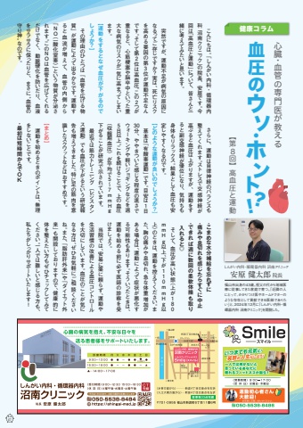 %u3011%u3057%u3093%u304c%u3044%u5185%u79d1%u30fb%u5faa%u74b0%u5668%u5185%u79d1 %u6cbc%u5357%u30af%u30ea%u30cb%u30c3%u30af%u5b89%u539f %u5065%u592a%u90ce %u9662%u9577%u798f%u5c71%u5e02%u51fa%u8eab%u306e43%u6b73%u3002%u7956%u7236%u306e%u4ee3%u304b%u3089%u5730%u57df%u533b%u7642%u306b%u5f93%u4e8b%u3057%u3066%u304d%u305f%u5bb6%u5ead%u3067%u80b2%u3064%u3002%u300c%u8fd1%u96a3%u306e%u4eba%u306b%u3068%u3063%u3066%u3001%u304b%u304b%u308a%u3064%u3051%u533b%u3084%u30db%u30fc%u30e0%u30c9%u30af%u30bf%u30fc%u306e%u3088%u3046%u306a%u5b58%u5728%u3068%u3057%u3066%u8ca2%u732e%u3067%u304d%u308b%u533b%u5e2b%u3067%u3042%u308a%u305f%u3044%u300d%u3068%u30012024%u5e7412%u6708%u306b%u300c%u3057%u3093%u304c%u3044%u5185%u79d1%u30fb%u5faa%u74b0%u5668%u5185%u79d1 %u6cbc%u5357%u30af%u30ea%u30cb%u30c3%u30af%u300d%u3092%u958b%u9662%u3057%u305f%u3002%u5065%u5eb7%u30b3%u30e9%u30e0%u8840%u5727%u306e%u30a6%u30bd%u30db%u30f3%u30c8!?%u30fb %u5fc3%u81d3 %u30fb %u8840%u7ba1%u306e%u5c02%u9580%u533b%u304c%u6559%u3048%u308b %u3010%u7b2c8%u56de%u3011%u9ad8%u8840%u5727%u3068%u904b%u52d5%u79d1 %u3000%u3053%u3093%u306b%u3061%u306f%u3002 %u300c%u3057%u3093%u304c %u3044%u5185%u79d1%u30fb%u5faa%u74b0%u5668%u5185 %u6cbc%u5357%u30af%u30ea %u30cb %u30c3 %u30af%u300d %u306e%u9662%u9577%u3001%u5b89%u539f%u3067%u3059%u3002 %u4eca %u307e%u3059%u3002 %u5927%u306a%u75c5%u6c17%u306e%u30ea%u30b9%u30af%u304c %u4e00 %u6c17%u306b%u9ad8%u307e %u3063 %u3066%u3057%u307e%u3044 %u91cd%u306a%u308b%u3068%u3001%u5fc3%u7b4b%u6897%u585e%u3084%u8133%u5352%u4e2d%u3068%u3044 %u3063 %u305f%u91cd %u3067%u3059%u3002 %u305d%u3057%u3066%u7b2c2%u4f4d%u306f%u9ad8%u8840%u5727%u3002 %u3053%u306e2%u3064 %u304c %u3092%u9ad8%u3081%u308b%u8981%u56e0%u306e%u7b2c3%u4f4d%u304c%u904b%u52d5%u4e0d%u8db3%u306a%u3093 %u306a%u308b %u3063 %u3066%u3054%u5b58%u3058%u3067%u3059%u304b%uff1f%u5b9f%u306f%u3001 %u6b7b%u4ea1%u30ea%u30b9%u30af %u3000%u7a81%u7136%u3067%u3059%u304c%u3001%u904b%u52d5%u4e0d%u8db3%u304c%u75c5%u6c17%u306e%u539f%u56e0%u306b %u7dd2%u306b%u8003%u3048%u3066%u307f%u305f%u3044%u3068%u601d%u3044%u307e%u3059%u3002 %u56de%u306f %u300c%u9ad8%u8840%u5727%u3068%u904b%u52d5%u300d %u306b %u3064 %u3044%u3066%u3001%u7686%u3055%u3093%u3068 %u4e00 %u5b88%u308a%u795e%u301e %u306a%u306e%u3067%u3059%u3002 %u3092%u30b5%u30e9%u30b5%u30e9%u306b%u4fdd %u3063 %u305f%u308a%u3068%u3001%u307e%u3055%u306b %u301d%u8840%u7ba1%u306e %u3060%u3051%u3067%u306a%u304f%u3001%u52d5%u8108%u786c%u5316%u3092%u9632%u3044%u3060%u308a%u3001%u8840%u6db2 %u308c%u307e%u3059%u3002 %u3053%u306eNO%u306f%u8840%u7ba1%u3092%u5e83%u3052%u3066%u304f%u308c%u308b %u300cNO %uff08 %u4e00 %u9178%u5316%u7a92%u7d20%uff09 %u300d %u3068%u3044%u3046%u7269%u8cea%u304c%u5206%u6ccc%u3055 %u308b%u3068%u8840%u6d41%u304c%u5897%u3048%u3066%u3001%u8840%u7ba1%u306e%u5185%u5074%u304b%u3089 %u8cea%u300d %u304c%u904b%u52d5%u306b%u3088 %u3063 %u3066%u51fa%u308b%u304b%u3089%u3067%u3059%u3002 %u904b%u52d5%u3059 %u3000%u305d%u306e%u7406%u7531%u306e%u3072%u3068%u3064 %u306f%u300c%u8840%u7ba1%u3092%u5e83%u3052%u308b%u7269 %u3057%u3087%u3046%u304b%uff1f%u3011 %u3010%u904b%u52d5%u3092%u3059%u308b%u3068%u306a%u305c%u8840%u5727%u304c%u4e0b%u304c%u308b%u306e%u3067%u3000%u57fa%u672c%u306f %u300c%u6709%u9178%u7d20%u904b%u52d5%u300d %u3067%u3059%u3002 %u76ee%u5b89%u306f1 %u3010%u3069%u306e%u3088%u3046%u306a%u904b%u52d5%u304c%u826f%u3044%u306e%u3067%u3057%u3087%u3046%u304b%uff1f %u5b9a%u3057%u3084%u3059%u304f%u306a%u308b%u306e%u3067%u3059%u3002 %u8eab%u4f53%u3082%u30ea%u30e9%u30c3%u30af%u30b9%u3002 %u7d50%u679c%u3068%u3057%u3066%u8840%u5727%u3082%u5b89 %u308b%u3068%u526f%u4ea4%u611f%u795e%u7d4c%u304c%u512a%u4f4d%u306b%u306a%u308a%u3001 %u6c17%u6301%u3061%u3082 %u9ad8%u3076%u308b%u3068%u8840%u5727%u306f%u4e0a%u304c%u308a%u307e%u3059%u304c%u3001%u904b%u52d5%u3092%u3059 %u6574%u3048%u3066%u304f%u308c%u307e%u3059%u3002 %u30b9%u30c8%u30ec%u30b9%u3067%u4ea4%u611f%u795e%u7d4c%u304c %u3000%u3055%u3089%u306b%u3001%u904b%u52d5%u306f%u81ea%u5f8b%u795e%u7d4c%u306e%u30d0%u30e9%u30f3%u30b9%u3082 %u65e530%u5206%u3001%u3084%u3084%u304d%u3064 %u3044%u3068%u611f%u3058%u308b%u7a0b%u5ea6%u306e%u901f%u3055%u3067 %u30fb %u6700%u521d%u306f%u77ed%u6642%u9593%u304b%u3089%u3067OK %u3092%u3057%u306a%u3044%u3053%u3068%u3067%u3059%u3002 %u3000%u904b%u52d5%u3092%u59cb%u3081%u308b%u3068%u304d%u306e%u30dd%u30a4%u30f3%u30c8%u306f%u3001 %u7121%u7406 %u3010%u307e%u3068%u3081%u3011 %u8b58%u3057%u305f%u30b9%u30af%u30ef %u30c3 %u30c8%u306a%u3069%u306f%u304a%u3059%u3059%u3081%u3067%u3059%u3002 %u544a%u3082%u5897%u3048%u3066%u304d%u307e%u3057%u305f%u3002 %u7279%u306b%u8db3%u306e%u7b4b%u8089%u3092%u610f %u30b9%u904b%u52d5%uff09%u3067%u3082%u8840%u5727%u304c%u4e0b%u304c%u308b%u3068%u3044%u3046%u7814%u7a76%u5831 %u3000%u6700%u8fd1%u3067%u306f%u7b4b%u529b%u30c8%u30ec%u30fc %u30cb %u30f3%u30b0%uff08%u30ec%u30b8%u30b9%u30bf%u30f3 %u4e0b%u304c%u308b%u3053%u3068%u304c%u7814%u7a76%u3067%u793a%u3055%u308c%u3066%u3044%u307e%u3059%u3002 %u3000 %uff08%u53ce%u7e2e%u671f%u8840%u5727%uff09%u304c%u5e73%u5747%u30675%u301c7mmHg 5%u65e5%u4ee5%u4e0a%u3002 %u3053%u308c%u3092%u7d9a%u3051%u308b%u3053%u3068%u3067%u3001 %u4e0a%u306e%u8840%u5727 %u30a6%u30a9%u30fc%u30ad%u30f3%u30b0%u3084%u8efd%u3044%u30b8%u30e7%u30ae%u30f3%u30b0%u306a%u3069%u3092%u9031%u30fb %u30fb %u75db%u307f%u3084%u606f%u5207%u308c%u3092%u611f%u3058%u305f%u3089%u3059%u3050%u306b%u4e2d%u6b62 %u30fb %u3053%u307e%u3081%u306a%u6c34%u5206%u88dc%u7d66%u3092%u5fd8%u308c%u305a%u306b %u305d%u3057%u3066%u3001 %u8840%u5727%u304c%u9ad8%u3044%u72b6%u614b %uff08%u4e0a%u304c180 %u5165%u308c%u308b%u3068%u25ce %u3067%u304d%u308c%u3070%u9031%u306b%u6570%u56de%u306e%u67d4%u8edf%u4f53%u64cd%u3082%u53d6%u308a %u79c1%u305f%u3061%u304c%u3057 %u3063 %u304b%u308a%u30b5%u30dd%u30fc%u30c8%u3044%u305f%u3057%u307e%u3059%uff01 %u304f%u3060%u3055%u3044%u3002 %u4e00 %u4eba%u3067%u306f%u96e3%u3057%u3044%u3068%u611f%u3058%u308b%u65b9%u3082%u3001 %u4f53%u3092%u6574%u3048%u305f%u3044%u65b9%u3082%u305c%u3072%u30c1%u30a7 %u30c3%u30af%u3057%u3066%u307f%u3066 %u6765%u300d %u3082%u958b%u8a2d%u305