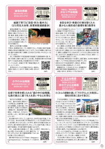 12%u591a%u5f69%u306a%u5b66%u3073%u30fb%u5b63%u7bc0%u306e%u884c%u4e8b%u3092%u53d6%u308a%u5165%u308c%u8c4a%u304b%u306a%u4eba%u683c%u5f62%u6210%u306e%u57fa%u790e%u3092%u990a%u3046%u6559%u80b2%u3092%u304b%u306a%u308a%u3084%u5e7c%u7a1a%u5712%u798f%u5c71%u5e02%u798f%u5c71%u5e02%u5bfa%u753a4-24%u260e084-922-4141%u3000%u304b%u306a%u308a%u3084%u5e7c%u7a1a%u5712%u3067%u306f%u3001%u5e83%u3005%u3068%u3057%u305f%u5712%u5ead%u3067%u306e%u5916%u904a%u3073%u3092%u4e2d%u5fc3%u306b%u3001%u97f3%u697d%u30fb%u7d75%u753b%u30fb%u5de5%u4f5c%u30fb%u6587%u5b57%u3084%u6570%u306e%u304a%u3051%u3044%u3053%u306a%u3069%u306e%u301d%u5b66%u3073%u306e%u6642%u9593%u301f%u3092%u30d0%u30e9%u30f3%u30b9%u3088%u304f%u53d6%u308a%u5165%u308c%u3001%u904a%u3073%u306e%u4e2d%u304b%u3089%u3001%u3044%u308d%u3044%u308d%u306a%u3053%u3068%u3092%u5b66%u3073%u3001%u3059%u304f%u3059%u304f%u3068%u826f%u3044%u5b50%u306b%u80b2%u3064%u3088%u3046%u3001%u65e5%u3005%u306e%u4fdd%u80b2%u3092%u884c%u3063%u3066%u3044%u307e%u3059%u3002%u3000%u307e%u305f%u3001%u8b1b%u5e2b%u306b%u3088%u308b%u82f1%u8a9e%u30fb%u4f53%u80b2%u30fb%u5408%u6c17%u9053%u30ec%u30c3%u30b9%u30f3%u3092%u30ab%u30ea%u30ad%u30e5%u30e9%u30e0%u306b%u53d6%u308a%u5165%u308c%u3001%u7530%u690d%u3048%u30fb%u4e03%u5915%u30fb%u828b%u6398%u308a%u30fb%u7bc0%u5206%u306e%u8c46%u307e%u304d%u306a%u3069%u3001%u56db%u5b63%u3092%u901a%u3057%u3066%u306e%u884c%u4e8b%u3082%u591a%u304f%u3042%u308a%u307e%u3059%u3002%u5712%u5ead%u306b%u306f%u305f%u304f%u3055%u3093%u306e%u904a%u5177%u304c%u3042%u308a%u3001%u5712%u820e%u306f%u51b7%u6696%u623f%u5b8c%u5099%u3067%u3001%u6e2f%u753a%u306b%u306f%u904b%u52d5%u30b0%u30e9%u30a6%u30f3%u30c9%u3082%u3042%u308a%u307e%u3059%u3002%uff11%u30af%u30e9%u30b9%u306e%u4eba%u6570%u306f%u5c11%u306a%u3081%u306b%u8a2d%u5b9a%u3057%u3001%u5e74%u5c11%u30af%u30e9%u30b9%u30fb%u6e80%uff13%u6b73%u5150%u30af%u30e9%u30b9%u306f%u3001%uff12%u4eba%u62c5%u4efb%u306b%u3059%u308b%u306a%u3069%u3001%u5712%u5150%u4e00%u4eba%u4e00%u4eba%u306b%u304d%u3081%u7d30%u304b%u304f%u5bfe%u5fdc%u3057%u3066%u3044%u307e%u3059%u3002%u3000%u5e02%u5185%u5e83%u57df%u306b%u7121%u6599%u9001%u8fce%u30d0%u30b9%u3092%u904b%u884c%u3002%u304a%u663c%u3054%u98ef%u306f%u3001%u304a%u5f01%u5f53%u304b%u7d66%u98df%u304b%u3092%u9078%u3079%u3001%u30d1%u30f3%u3084%u725b%u4e73%u306f%u5f53%u65e5%u6ce8%u6587%u3082%u53ef%u80fd%u3067%u3059%u3002%u5915%u65b9%uff16%u6642%uff13%uff10%u5206%u307e%u3067%u306e%u5ef6%u9577%u4fdd%u80b2%u3084%u3001%u6625%u4f11%u307f%u30fb%u590f%u4f11%u307f%u30fb%u51ac%u4f11%u307f%u4e2d%u306e%u9810%u304b%u308a%u4fdd%u80b2%u3082%u884c%u3063%u3066%u3044%u307e%u3059%u3002%u3000%u9858%u66f8%u53d7%u4ed8%u306f%u3001%uff11%uff11%u6708%uff14%u65e5%uff08%u706b%uff09%u304b%u3089%u3002%u672a%u5c31%u5712%u5150%u304c%u5bfe%u8c61%u306e%u89aa%u5b50%u6559%u5ba4%u3084%u5712%u5ead%u958b%u653e%u3082%u884c%u3063%u3066%u3044%u307e%u3059%u3002%u3000%u304a%u554f%u3044%u5408%u308f%u305b%u3001%u898b%u5b66%u306f%u3044%u3064%u3067%u3082%u3067%u304d%u307e%u3059%u300210/8%uff08%u6c34%uff09%u300110/22%uff08%u6c34%uff0910:15%uff5e11:1510/25%uff08%u571f%uff0910:00%uff5e11:30%u89aa%u5b50%u6559%u5ba4%u5712%u5ead%u958b%u653e%uff08HP%uff09%u5b66%u6821%u6cd5%u4eba %u8ce2%u5fe0%u5bfa%u5b66%u5712%u7d75%u753b%u3067%u80b2%u3066%u308b%u300c%u81ea%u4fe1%u30fb%u5b66%u529b%u30fb%u96c6%u4e2d%u529b%u300d%uff08%u3070%u3089%u5199%u751f%u5927%u4f1a%u7b49%u3001%u53d7%u8cde%u8005%u6570%u9023%u7d9a%u6700%u591a%uff09%u3000%u8aa0%u4fe1%u5e7c%u7a1a%u5712%u3067%u306f%u3001%u5b50%u3069%u3082%u305f%u3061%u304c%u5352%u5712%u5f8c%u306b%u8fce%u3048%u308b%u3055%u307e%u3056%u307e%u306a%u74b0%u5883%u306b%u9806%u5fdc%u3067%u304d%u308b%u3088%u3046%u3001%u300c%u5fc3%u60c5%u30fb%u610f%u6b32%u30fb%u614b%u5ea6%u300d%u3092%u80b2%u3080%u3053%u3068%u3092%u5927%u5207%u306b%u3057%u3066%u3044%u307e%u3059%u3002%u5b89%u5fc3%u3057%u3066%u904e%u3054%u305b%u308b%u74b0%u5883%u3092%u6574%u3048%u3001%u5c06%u6765%u306b%u3064%u306a%u304c%u308b%u529b%u3092%u57fa%u790e%u304b%u3089%u80b2%u3093%u3067%u3044%u308b%u306e%u304c%u7279%u5fb4%u3067%u3059%u3002%u3000%u5712%u5185%u306b%u306f%u81ea%u7136%u8c4a%u304b%u306a%u5712%u5ead%u3084%u660e%u308b%u3044%u4fdd%u80b2%u5ba4%u304c%u3042%u308a%u3001%u30d0%u30c8%u30f3%u9f13%u968a%u3084%u30b9%u30c8%u30ec%u30c3%u30c1%u4f53%u64cd%u3001%u97f3%u697d%u3084%u7d75%u753b%u3001%u82f1%u8a9e%u306a%u3069%u591a%u5f69%u306a%u6d3b%u52d5%u3092%u53d6%u308a%u5165%u308c%u3066%u3044%u307e%u3059%u3002%u3053%u308c%u3089%u306e%u4f53%u9a13%u306f%u3001%u5065%u3084%u304b%u306a%u4f53%u3068%u8c4a%u304b%u306a%u611f%u6027%u3092%u80b2%u3066%u3001%u56f0%u96e3%u306b%u7acb%u3061%u5411%u304b%u3046%u529b%u3084%u601d%u3044%u3084%u308a%u306e%u5fc3%u306b%u3064%u306a%u304c%u3063%u3066%u3044%u304d%u307e%u3059%u3002%u3000%u307e%u305f%u3001%u5348%u5f8c6%u6642%u307e%u3067%u306e%u5ef6%u9577%u4fdd%u80b2%uff08%u5e0c%u671b%u5236%uff09%u3084%u9577%u671f%u4f11%u6687%u4e2d%uff08%u590f%u30fb%u51ac%u30fb%u6625%uff09%u306e%u4fdd%u80b2%u30012%u6b73%u304b%u3089%u901a%u3048%u308b%u300c%u30df%u30cb%u3070%u3089%u7d44%u300d%u3001%u5e0c%u671b%u8005%u5bfe%u8c61%u306e%u304a%u5f01%u5f53%u7d66%u98df%u3084%u30d0%u30b9%u9001%u8fce%u3082%u5b9f%u65bd%u3002%u672a%u5c31%u5712%u5150%u5411%u3051%u306e%u5b50%u80b2%u3066%u30b5%u30fc%u30af%u30eb%u3082%u3042%u308a%u3001%u5730%u57df%u306e%u5b50%u80b2%u3066%u5bb6%u5ead%u3092%u5e45%u5e83%u304f%u30b5%u30dd%u30fc%u30c8%u3057%u3066%u3044%u307e%u3059%u3002%u3000%u898b%u5b66%u4f1a%u3084%u30b5%u30fc%u30af%u30eb%u306e%u65e5%u7a0b%u304c%u5408%u308f%u306a%u3044%u5834%u5408%u3082%u3001%u500b%u5225%u306b%u5bfe%u5fdc%u3057%u3066%u3044%u308b%u306e%u3067%u3001%u6c17%u8efd%u306b%u304a%u554f%u3044%u5408%u308f%u305b%u304f%u3060%u3055%u3044%u3002%u898b%u5b66%u4f1a%uff06%u30b5%u30fc%u30af%u30eb10/3%uff08%u91d1%uff09%u30fb10/9%uff08%u6728%uff0910/17%uff08%u91d1%uff09%u30fb10/28%uff08%u706b%uff0910%uff1a30%uff5e11%uff1a30%u9858%u66f8%u53d7%u4ed811/1%uff08%u571f%uff09%u5348%u524d8%u6642%u304b%u3089%u30ea%u30fc%u30c7%u30f3%u30ed%u30fc%u30ba%u5927%u30db%u30fc%u30eb%u30fb%u304a%u3086%u3046%u304e%u4f1a%u4e94%u611f%u3067%u56db%u