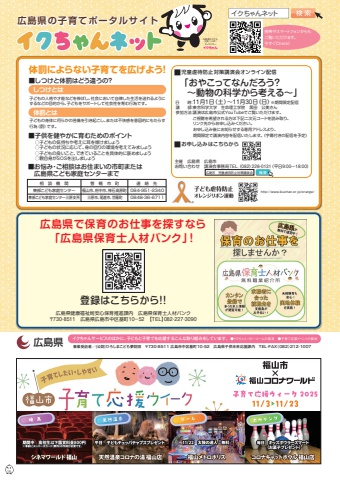 15%u30a4%u30af%u3061%u3083%u3093%u30cd%u30c3%u30c8%u643a%u5e2f%u3084%u30b9%u30de%u30fc%u30c8%u30d5%u30a9%u30f3%u304b%u3089%u3082%u3054%u89a7%u3044%u305f%u3060%u3051%u307e%u3059%u3002%u4eca%u3059%u3050Check%uff01%u5e83%u5cf6%u770c%u306e%u5b50%u3069%u3082%u5143%u6c17%u3044%u3063%u3071%u3044%u30ad%u30e3%u30e9%u30af%u30bf%u30fc%u30a4%u30af%u3061%u3083%u3093%u5e83%u5cf6%u770c%u306e%u5b50%u80b2%u3066%u30dd%u30fc%u30bf%u30eb%u30b5%u30a4%u30c8%u5e83%u5cf6%u770c %u30a4%u30af%u3061%u3083%u3093%u30b5%u30fc%u30d3%u30b9%u306e%u307b%u304b%u306b%u3001%u5b50%u3069%u3082%u3068%u5b50%u80b2%u3066%u3092%u5fdc%u63f4%u3059%u308b%u3053%u3093%u306a%u53d6%u308a%u7d44%u307f%u3092%u3057%u3066%u3044%u307e%u3059%u3002%u4e8b%u696d%u53d7%u8a17%u8005%uff0f(%u516c%u8ca1)%u3072%u308d%u3057%u307e%u3053%u3069%u3082%u5922%u8ca1%u56e3%u3000%u3012730-8511 %u5e83%u5cf6%u5e02%u4e2d%u533a%u57fa%u753a10-52%u3000%u5e83%u5cf6%u770c%u5b50%u4f9b%u672a%u6765%u5fdc%u63f4%u8ab2%u5185%u3000TEL%u30fbFAX%uff08082%uff09212-1007%u25cf%u30a4%u30af%u3061%u3083%u3093%u30d9%u30d3%u30fc%u30eb%u30fc%u30e0%u306e%u666e%u53ca%u3000%u25cf%u5b50%u80b2%u3066%u5fdc%u63f4%u30a4%u30d9%u30f3%u30c8%u306e%u53c2%u52a0%u3000%u25a0%u3057%u3064%u3051%u3068%u4f53%u7f70%u306f%u3069%u3046%u9055%u3046%u306e%uff1f%u4f53%u7f70%u306b%u3088%u3089%u306a%u3044%u5b50%u80b2%u3066%u3092%u5e83%u3052%u3088%u3046%uff01%u25a0%u304a%u60a9%u307f%u30fb%u3054%u76f8%u8ac7%u306f%u304a%u4f4f%u307e%u3044%u306e%u5e02%u753a%u307e%u305f%u306f%u3000%u5e83%u5cf6%u770c%u3053%u3069%u3082%u5bb6%u5ead%u30bb%u30f3%u30bf%u30fc%u307e%u3067%u25a0%u5b50%u4f9b%u3092%u5065%u3084%u304b%u306b%u80b2%u3080%u305f%u3081%u306e%u30dd%u30a4%u30f3%u30c8%u25a0%u5150%u7ae5%u8650%u5f85%u9632%u6b62%u5bfe%u7b56%u8b1b%u6f14%u4f1a%u30aa%u30f3%u30e9%u30a4%u30f3%u914d%u4fe1%u300c%u304a%u3084%u3053%u3063%u3066%u306a%u3093%u3060%u308d%u3046%uff1f %uff5e%u52d5%u7269%u306e%u79d1%u5b66%u304b%u3089%u8003%u3048%u308b%uff5e%u300d%u25a0%u304a%u7533%u3057%u8fbc%u307f%u306f%u3053%u3061%u3089%u304b%u3089%u3057%u3064%u3051%u3068%u306f%u5b50%u3069%u3082%u306e%u4eba%u683c%u3084%u624d%u80fd%u306a%u3069%u3092%u4f38%u3070%u3057%u3001%u793e%u4f1a%u306b%u304a%u3044%u3066%u81ea%u5f8b%u3057%u305f%u751f%u6d3b%u3092%u9001%u308c%u308b%u3088%u3046%u306b%u3059%u308b%u306a%u3069%u306e%u76ee%u7684%u304b%u3089%u3001%u5b50%u3069%u3082%u3092%u30b5%u30dd%u30fc%u30c8%u3057%u3066%u793e%u4f1a%u6027%u3092%u80b2%u3080%u884c%u70ba%u3067%u3059%u3002 %u65e5%u3000%u3000%u6642%uff1a11%u6708%uff11%u65e5%uff08%u571f%uff09%uff5e11%u670830%u65e5%uff08%u65e5%uff09%u203b%u671f%u9593%u9650%u5b9a%u914d%u4fe1%u8b1b%u3000%u3000%u5e2b%uff1a%u6771%u4eac%u79d1%u5b66%u5927%u5b66%u3000%u751f%u547d%u7406%u5de5%u5b66%u9662%u3000%u9ed2%u7530%u3000%u516c%u7f8e%u3055%u3093 %u53c2%u52a0%u65b9%u6cd5%uff1a%u8b1b%u6f14%u306f%u5e83%u5cf6%u5e02%u516c%u5f0fYouTube%u3067%u3054%u89a7%u3044%u305f%u3060%u3051%u307e%u3059%u3002%u3000%u3000%u3000%u3000%u3054%u8996%u8074%u3092%u5e0c%u671b%u3055%u308c%u308b%u65b9%u306f%u4e0b%u8a18%u4e8c%u6b21%u5143%u30b3%u30fc%u30c9%u3092%u8aad%u307f%u53d6%u308a%u3001%u3000%u3000%u3000%u3000%u30ea%u30f3%u30af%u5148%u304b%u3089%u304a%u7533%u3057%u8fbc%u307f%u304f%u3060%u3055%u3044%u3002%u3000%u3000%u3000%u3000%u304a%u7533%u3057%u8fbc%u307f%u5f8c%u306b%u304a%u77e5%u3089%u305b%u3059%u308b%u5c02%u7528%u30a2%u30c9%u30ec%u30b9%u3088%u308a%u3001%u3000%u3000%u3000%u3000%u671f%u9593%u9650%u5b9a%u3067%u8b1b%u6f14%u5185%u5bb9%u3092%u914d%u4fe1%u3044%u305f%u3057%u307e%u3059%u3002%uff08%u5b57%u5e55%u4ed8%u304d%u306e%u914d%u4fe1%u3092%u4e88%u5b9a%uff09%u25cb%u5b50%u3069%u3082%u306e%u6c17%u6301%u3061%u3084%u8003%u3048%u306b%u8033%u3092%u50be%u3051%u307e%u3057%u3087%u3046%u25cb%u5b50%u3069%u3082%u306e%u72b6%u6cc1%u306b%u5fdc%u3058%u3066%u3001%u8eab%u306e%u56de%u308a%u306e%u74b0%u5883%u3092%u8003%u3048%u3066%u307f%u307e%u3057%u3087%u3046%u25cb%u5b50%u3069%u3082%u306e%u826f%u3044%u3053%u3068%u3001%u3067%u304d%u3066%u3044%u308b%u3053%u3068%u3092%u5177%u4f53%u7684%u306b%u8912%u3081%u307e%u3057%u3087%u3046%u25cb%u89aa%u81ea%u8eab%u304c%uff33%uff2f%uff33%u3092%u51fa%u3057%u307e%u3057%u3087%u3046%u4f53%u7f70%u3068%u306f%u76f8%u3000%u8ac7%u3000%u6a5f%u3000%u95a2%u6771%u90e8%u3053%u3069%u3082%u5bb6%u5ead%u30bb%u30f3%u30bf%u30fc%u6771%u90e8%u3053%u3069%u3082%u5bb6%u5ead%u30bb%u30f3%u30bf%u30fc%u4e09%u539f%u652f%u6240%u7ba1%u3000%u8f44%u3000%u5e02%u3000%u753a%u798f%u5c71%u5e02%u3001%u5e9c%u4e2d%u5e02%u3001%u795e%u77f3%u9ad8%u539f%u753a%u4e09%u539f%u5e02%u3001%u5c3e%u9053%u5e02%u3001%u4e16%u7f85%u753a084-951-23400848-36-6711%u9023%u3000%u7d61%u3000%u5148%u5b50%u3069%u3082%u306e%u8eab%u4f53%u306b%u4f55%u3089%u304b%u306e%u82e6%u75db%u3092%u5f15%u304d%u8d77%u3053%u3057%u3001%u307e%u305f%u306f%u4e0d%u5feb%u611f%u3092%u610f%u56f3%u7684%u306b%u3082%u305f%u3089%u3059%u884c%u70ba%uff08%u7f70%uff09%u3067%u3059%u3002%u4e3b%u50ac%u3000%u5e83%u5cf6%u770c%u3000%u5e83%u5cf6%u5e02%u304a%u554f%u3044%u5408%u308f%u305b%u3000%u8b1b%u6f14%u4f1a%u4e8b%u52d9%u5c40TEL.%uff08082%uff09228-0131%uff08%u5e73%u65e59%uff1a00%uff5e18%uff1a00%uff09http://www.ikuchan.or.jp/orange/ %u767b%u9332%u306f%u3053%u3061%u3089%u304b%u3089%uff01%uff01%u5e83%u5cf6%u770c%u3067%u4fdd%u80b2%u306e%u304a%u4ed5%u4e8b%u3092%u63a2%u3059%u306a%u3089%u300c%u5e83%u5cf6%u770c%u4fdd%u80b2%u58eb%u4eba%u6750%u30d0%u30f3%u30af%u300d%uff01%u5e83%u5cf6%u770c%u5065%u5eb7%u798f%u7949%u5c40%u5b89%u5fc3%u4fdd%u80b2%u63a8%u9032%u8ab2%u5185%u3000%u5e83%u5cf6%u770c%u4fdd%u80b2%u58eb%u4eba%u6750%u30d0%u30f3%u30af%u3012730%u20108511%u3000%u5e83%u5cf6%u770c%u5e83%u5cf6%u5e02%u4e2d%u533a%u57fa%u753a10%uff0d52%u3000%u3010TEL%u3011082%u2010227%u20103090%u5e83%u5cf6%u5e02%u3000%u5150%u7ae5%u8650%u5f85%u9632%u6b62%u5bfe%u7b56%u8b1b%u6f14%u4f1a %u691c%u7d22
