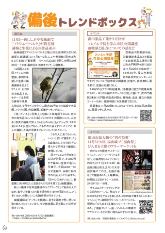 39%u30a4%u30d9%u30f3%u30c8%u3000%u8089%u30b0%u30eb%u30e1%u306e%u8ca9%u58f2%u3084%u30b9%u30c6%u30fc%u30b8%u30a4%u30d9%u30f3%u30c8%u3001%u30d5%u30ea%u30fc%u30de%u30fc%u30b1%u30c3%u30c8%u306a%u3069%u3092%u884c%u3046%u300c%u798f%u8089%u796d%uff08%u3075%u304f%u306b%u304f%u3055%u3044%uff092025%u300d%u304c11%u670823%u30fb24%u65e5%u3001%u798f%u5c71%u57ce%uff08%u798f%u5c71%u5e02%u4e38%u4e4b%u5185%uff09%u306e%u5929%u5b88%u524d%u5e83%u5834%u3084%u4e8c%u306e%u4e38%u3001%u5317%u5074%u5e83%u5834%u306a%u3069%u3067%u958b%u50ac%u3055%u308c%u308b%u3002%u5165%u5834%u7121%u6599%u3002%u6642%u9593%u306f23%u65e5%u304c10%u250018%u6642%u300124%u65e5%u304c10%u250016%u6642%u3002%u3000%u30b5%u30a4%u30b3%u30ed%u30b9%u30c6%u30fc%u30ad%u3084%u30e1%u30f3%u30c1%u30ab%u30c4%u306a%u3069%u8089%u3092%u30e1%u30fc%u30f3%u306b%u3001%u79cb%u306a%u3089%u3067%u306f%u306e%u3055%u307e%u3056%u307e%u306a%u30b0%u30eb%u30e1%u3092%u697d%u3057%u3081%u308b%u3002%u7d0430%u5e97%u304c%u96c6%u307e%u308b%u300c%u3075%u308c%u3042%u3044%u30de%u30eb%u30b7%u30a7%u300d%u3084%u3001%u8b0e%u89e3%u304d%u30e9%u30ea%u30fc%u3068%u3044%u3063%u305f%u30a4%u30d9%u30f3%u30c8%u3082%u3002%u6052%u4f8b%u306e%u300c%u3073%u3093%u307e%u308b%u300d%u4e3b%u50ac%u306e%u30d5%u30ea%u30fc%u30de%u30fc%u30b1%u30c3%u30c8%u3082%u3042%u308b%u3002%u5b50%u4f9b%u670d%u3084%u30d9%u30d3%u30fc%u670d%u3001%u30cf%u30f3%u30c9%u30e1%u30fc%u30c9%u96d1%u8ca8%u3084%u30a2%u30af%u30bb%u30b5%u30ea%u30fc%u306a%u3069%u304a%u8cb7%u3044%u5f97%u306a%u54c1%u304c%u305a%u3089%u308a%u3068%u4e26%u3076%u3002%u798f%u5c71%u5e02%u6700%u5927%u7d1a%u306e%u201c%u8089%u306e%u796d%u5178%u201d11%u670823%u30fb24%u65e5%u3001%u798f%u5c71%u57ce%u3067%u300c%u798f%u8089%u796d%u300d%u3073%u3093%u307e%u308b%u4e3b%u50ac%u306e%u30d5%u30ea%u30fc%u30de%u30fc%u30b1%u30c3%u30c8%u3082%u554f%u3044%u5408%u308f%u305b%u5148%u3000%u540c%u5b9f%u884c%u59d4%u54e1%u4f1a %u30a4%u30f3%u30b9%u30bf%u30b0%u30e9%u30e0%uff08@fukunikusai%uff09%u30a4%u30d9%u30f3%u30c8%u3000%u533b%u85ac%u54c1%u3084%u533b%u85ac%u90e8%u5916%u54c1%u3001%u6804%u990a%u6a5f%u80fd%u98df%u54c1%u306a%u3069%u3092%u88fd%u9020%u3059%u308b%u68ee%u7530%u85ac%u54c1%u5de5%u696d%u3231%uff08%u798f%u5c71%u5e02%u5927%u9580%u753a%u91ce%u3005%u6d5c1059%uff09%u306f11%u670829%u65e513%u664230%u5206%u250015%u664230%u5206%u3001%u798f%u5c71%u5e02%u6771%u685c%u753a%u306e%u770c%u6c11%u6587%u5316%u30bb%u30f3%u30bf%u30fc%u3075%u304f%u3084%u307e%u3067%u300c%u30d5%u30ec%u30a4%u30eb%u4e88%u9632%u5e02%u6c11%u516c%u958b%u8b1b%u5ea7%u300d%u3092%u50ac%u3059%u3002%u53c2%u52a0%u7121%u6599%u3002%u8981%u4e88%u7d04%u3067%u3001%u5b9a%u54e1%u306f%u5148%u7740100%u4eba%u3002%u300014%u664230%u5206%u307e%u3067%u306f%u7279%u5225%u8b1b%u6f14%u3002%u300c%u8840%u7cd6%u5024%u3068%u7b4b%u529b%u304c%u5065%u5eb7%u9577%u5bff%u306e%u30ab%u30ae%uff01%uff5e%u4eca%u65e5%u304b%u3089%u59cb%u3081%u308b%u30d5%u30ec%u30a4%u30eb%u4e88%u9632%u300d%u3068%u984c%u3057%u3066%u3001%u864e%u306e%u9580%u75c5%u9662%uff08%u6771%u4eac%uff09%u306e%u9580%u8107%u5b5d%u9662%u9577%u304c%u8a9e%u308b%u3002%u9aa8%u5f37%u5ea6%u3001%u8840%u6d41%u3001%u63e1%u529b%u306e%u6e2c%u5b9a%u30b3%u30fc%u30ca%u30fc%u3082%u3042%u308a%u3001%u5065%u5eb7%u76f8%u8ac7%u306b%u3082%u5148%u7740%u9806%u3067%u5fdc%u3058%u308b%u3002%u3000%u5e0c%u671b%u8005%u306f11%u670820%u65e5%u307e%u3067%u306bQR%u30b3%u30fc%u30c9%u304b%u3089%u3001%u307e%u305f%u306f%u540c26%u65e5%u307e%u3067%u306b%u96fb%u8a71%u3067%u7533%u3057%u8fbc%u307f%u3092%u3002%u554f%u3044%u5408%u308f%u305b%u5148%u260e084%u30fb943%u30fb9900%uff08%u5e73%u65e58%uff1a30%uff5e17%uff1a00%uff09%u25bdhttps://www.moritayakuhin.co.jp%u68ee%u7530%u85ac%u54c1%u5de5%u696d%u304c11%u670829%u65e5%u30d5%u30ec%u30a4%u30eb%u4e88%u9632%u3092%u5b66%u3076%u5e02%u6c11%u516c%u958b%u8b1b%u5ea7%u8840%u7cd6%u5024%u3068%u7b4b%u529b%u306b%u3064%u3044%u3066%u306e%u8a71%u306a%u3069%u5c55%u793a%u4f1a%u3000%u7d75%u753b%u6559%u5ba4%u300c%u30a2%u30c8%u30ea%u30a8%u30fb%u30ea%u30d9%u30eb%u30bf%u300d%uff08%u798f%u5c71%u5e02%u5317%u5409%u6d25%u753a3-22-3%u7dd2%u8cc0%u4e45%u6075%u8b1b%u5e2b%uff09%u306f11%u67085%u25009%u65e5%u3001%u3057%u3076%u3084%u7f8e%u8853%u9928%uff08%u540c%u5e02%u672c%u753a8-27%uff09%u672c%u9928%u3067%u300c%u6559%u5ba4%u5c55 %u30ea%u30d9%u30eb%u30bf2025%u300d%u3092%u958b%u304f%u3002%u6642%u9593%u306f9%u664230%u5206%u250017%u6642%uff08%u6700%u7d42%u65e5%u306f16%u6642%u307e%u3067%uff09%u3067%u3001%u5165%u5834%u7121%u6599%u3002%u300012%u56de%u76ee%u3068%u306a%u308b%u540c%u30a2%u30c8%u30ea%u30a8%u306e%u6559%u5ba4%u5c55%u3002%u53c2%u52a0%u3092%u5e0c%u671b%u3057%u305f%u751f%u5f92%u306b%u7dd2%u8cc0%u8b1b%u5e2b%u3092%u52a0%u3048%u305f37%u4eba%u304c%u3001%u8a0838%u70b9%u3092%u51fa%u54c1%u3059%u308b%u3002%u30e2%u30c1%u30fc%u30d5%u306f%u8eab%u8fd1%u306a%u9759%u7269%u3084%u98a8%u666f%u3001%u4eba%u7269%u306a%u3069%u30026%u53f7%u30b5%u30a4%u30ba%u3092%u4e2d%u5fc3%u306b%u6700%u592730%u53f7%u307e%u3067%u306e%u6cb9%u7d75%u3084%u6c34%u5f69%u753b%u3001%u30a2%u30af%u30ea%u30eb%u753b%u3001%u8272%u925b%u7b46%u753b%u3001%u925b%u7b46%u30c7%u30c3%u30b5%u30f3%u304c%u4e26%u3076%u3002%u3000%u300c%u5f85%u3063%u3066%u3044%u308b%u300d%uff1d%u5199%u771f%u4e0a%uff1d%u3092%u63cf%u3044%u305f%u76bf%u6d77%u6442%u5b50%u3055%u3093%u306f%u3001%u5e9c%u4e2d%u5e02%u306e%u81ea%u5b85%u8fd1%u304f%u306b%u3044%u305f%u5c0f%u9ce5%u300c%u30b8%u30e7%u30a6%u30d3%u30bf%u30ad%u300d%u3092%u984c%u6750%u306b%u3057%u305f%u3002%u5c71%u6b69%u304d%u3068%u5199%u771f%u304c%u8da3%u5473%u306e%u77e5%u4eba%u304b%u3089%u300c%u5c71%u306e%u3075%u3082%u3068%u8fd1%u304f%u3067%u30b8%u30e7%u30a6%u30d3%u30bf%u30ad%u304c%u898b%u3089%u308c%u308b%u3088%u300d%u3068%u6559%u3048%u3066%u3082%u3089%u3063%u305f%u3082%u306e%u306e%u51fa%u4f1a%u3048%u305a%u306b%u3044%u305f%u3068%u3053%u308d%u3001%u77e5%u4eba%u304c%u64ae%u5f71%u3057%u305f%u9ce5%u306e%u5199%u771f%u3092%u30d7%u30ec%u30bc%u30f3%u30c8%u3057%u3066%u304f%u308c%u305f%u3068%u3044%u3046%u3002%u3000%u300c%u305d%u306e%u4eba%u306b%u898b%u3066%u3082%u3089%u3044%u305f%u3044%u3068%u3044%u3046%u601d%u3044%u3067%u63cf%u304d%u307e%u3057%u305f%u300d%u3068%u76bf%u6d77%u3055%u309