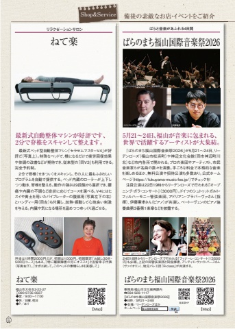 Shop&Service %u5099%u5f8c%u306e%u7d20%u6575%u306a%u304a%u5e97%u30fb%u30a4%u30d9%u30f3%u30c8%u3092%u3054%u7d39%u4ecb39%u4e8b%u52d9%u5c40:%u798f%u5c71%u5e02%u6587%u5316%u632f%u8208%u8ab2%u5185%u260e084%u30fb928%u30fb1117%u3010%u3070%u3089%u306e%u307e%u3061%u798f%u5c71%u56fd%u969b%u97f3%u697d%u796d2026%u3011%u25c6%u65e5%u6642%uff0f5%u670821%uff5e24%u65e5%u25c6%u4f1a%u5834%uff0f%u30ea%u30fc%u30c7%u30f3%u30ed%u30fc%u30ba%u307b%u304b%u30db%u30fc%u30e0%u30da%u30fc%u30b8%u3070%u3089%u306e%u307e%u3061%u798f%u5c71%u56fd%u969b%u97f3%u697d%u796d2026%u798f%u5c71%u56fd%u969b%u97f3%u697d%u796d %u691c%u7d22 %u3010Map%u3011%u300c%u3070%u3089%u306e%u307e%u3061%u798f%u5c71%u56fd%u969b%u97f3%u697d%u796d2026%u300d%u304c5%u670821%uff5e24%u65e5%u3001%u30ea%u30fc%u30c7%u30f3%u30ed%u30fc%u30ba%uff08%u798f%u5c71%u5e02%u677e%u6d5c%u753a%uff09%u3084%u795e%u8fba%u6587%u5316%u4f1a%u9928%uff08%u540c%u5e02%u795e%u8fba%u753a%u5ddd%u5317%uff09%u306a%u3069%u5e02%u5185%u5404%u6240%u3067%u958b%u304b%u308c%u308b%u3002%u30d7%u30ed%u306e%u697d%u56e3%u3084%u30a2%u30fc%u30c6%u30a3%u30b9%u30c8%u3001%u5e02%u6c11%u97f3%u697d%u5bb6%u3089%u304c%u540d%u66f2%u306e%u6570%u3005%u3092%u6f14%u594f%u3002%u624b%u3054%u308d%u306a%u6599%u91d1%u3067%u672c%u683c%u7684%u306a%u97f3%u697d%u3092%u697d%u3057%u3081%u308b%u307b%u304b%u3001%u7121%u6599%u516c%u6f14%u3084%u62db%u5f85%u516c%u6f14%u3082%u591a%u6570%u3042%u308a%u3002%u516c%u5f0f%u30db%u30fc%u30e0%u30da%u30fc%u30b8%uff08https://fukuyama-music-fes.jp/%uff09%u3067%u30c1%u30a7%u30c3%u30af%u3092%uff01%u3000%u6ce8%u76ee%u516c%u6f14%u306f22%u65e519%u6642%u304b%u3089%u30ea%u30fc%u30c7%u30f3%u30ed%u30fc%u30ba%u3067%u884c%u308f%u308c%u308b%u300c%u30aa%u30fc%u30d7%u30cb%u30f3%u30b0%u30fb%u30ac%u30e9%u30fb%u30b3%u30f3%u30b5%u30fc%u30c8%u300d%uff083000%u5186%uff09%u3002%u30c9%u30a4%u30c4%u306e%u30b7%u30e5%u30c8%u30a5%u30c3%u30c8%u30ac%u30eb%u30c8%u30fb%u30d5%u30a3%u30eb%u30cf%u30fc%u30e2%u30cb%u30fc%u7ba1%u5f26%u697d%u56e3%u3001%u30a2%u30c9%u30ea%u30a2%u30f3%u30fb%u30d7%u30e9%u30d0%u30fc%u30f4%u30a1%u3055%u3093%uff08%u6307%u63ee%uff09%u3001%u4f0a%u85e4%u61b2%u5b5d%u3055%u3093%uff08%u30d4%u30a2%u30ce%uff09%u304c%u5171%u6f14%u3057%u3001%u30d9%u30fc%u30c8%u30fc%u30f4%u30a7%u30f3%u306e%u30d4%u30a2%u30ce%u5354%u594f%u66f2%u7b2c3%u756a%u7b2c1%u697d%u7ae0%u306a%u3069%u3092%u62ab%u9732%u3059%u308b%u30025%u670821%uff5e24%u65e5%u3001%u798f%u5c71%u304c%u97f3%u697d%u306b%u5305%u307e%u308c%u308b%u3001%u4e16%u754c%u3067%u6d3b%u8e8d%u3059%u308b%u30a2%u30fc%u30c6%u30a3%u30b9%u30c8%u304c%u5927%u96c6%u7d50%u300224%u65e518%u6642%u304b%u3089%u30ea%u30fc%u30c7%u30f3%u30ed%u30fc%u30ba%u3067%u884c%u308f%u308c%u308b%u300c%u30d5%u30a3%u30ca%u30fc%u30ec%u30fb%u30b3%u30f3%u30b5%u30fc%u30c8%u300d%uff083500%u5186%uff09%u3082%u5fc5%u8074%u3002%u4e0a%u8a18%u306e%u540c%u7ba1%u5f26%u697d%u56e3%u3068%u540c%u6307%u63ee%u8005%u3001%u30a2%u30f3%u30c6%u30a3%u30a8%u30fb%u30f4%u30a1%u30a4%u30c8%u30cf%u30fc%u30b9%u3055%u3093%uff08%u30f4%u30a1%u30a4%u30aa%u30ea%u30f3%uff09%u3001%u5730%u5143%u30d0%u30ec%u30a8%u56e3%u300cR-class%u300d%u304c%u5171%u6f14%u3059%u308b%u3002%u3070%u3089%u306e%u307e%u3061%u798f%u5c71%u56fd%u969b%u97f3%u697d%u796d2026%u3070%u3089%u3068%u97f3%u697d%u304c%u3042%u3075%u308c%u308b4%u65e5%u9593%u798f%u5c71%u5e02%u5927%u8c37%u53f02-22-27090%u30fb9735%u30fb0587%u25c6%u55b6%uff0f9%uff1a00%uff5e17%uff1a00%u25c6%u4f11%uff0f%u65e5%u66dc%u3001%u795d%u65e5%u25c6P%uff0f%u3042%u308a%u306d%u3066%u697d%u3010Map%u3011%u6700%u65b0%u5f0f%u81ea%u52d5%u6574%u4f53%u30de%u30b7%u30f3%u304c%u597d%u8a55%u3067%u3059%u30012%u5206%u3067%u810a%u690e%u3092%u30b9%u30ad%u30e3%u30f3%u3057%u3066%u6574%u3048%u307e%u3059%u3002%u3000%u6700%u65b0%u5f0f%u30d9%u30c3%u30c9%u578b%u81ea%u52d5%u6574%u4f53%u30de%u30b7%u30f3%u300c%u30bb%u30e9%u30bc%u30e0%u30de%u30b9%u30bf%u30fcV4%u300d%u304c%u597d%u8a55%u3060%uff08%u5199%u771f%u4e0a%uff09%u3002%u7279%u6b8a%u306a%u30d9%u30c3%u30c9%u3067%u3001%u6a2a%u306b%u306a%u308b%u3060%u3051%u3067%u75b2%u52b4%u56de%u5fa9%u52b9%u679c%u3084%u4f53%u8abf%u306e%u6539%u5584%u306a%u3069%u304c%u671f%u5f85%u3067%u304d%u3001%u5f93%u6765%u578b%u306e%u300c%u540cV3%u300d%u3082%u5229%u7528%u3067%u304d%u308b%u3002%u5b8c%u5168%u4e88%u7d04%u5236%u3002%u30002%u5206%u3067%u810a%u690e%uff08%u305b%u304d%u3064%u3044%uff09%u3092%u30b9%u30ad%u30e3%u30f3%u3057%u3001%u305d%u306e%u4eba%u306b%u6700%u3082%u3075%u3055%u308f%u3057%u3044%u30d7%u30ed%u30b0%u30e9%u30e0%u3092%u81ea%u52d5%u3067%u63d0%u4f9b%u3059%u308b%u3002%u30d9%u30c3%u30c9%u5185%u8535%u306e%u30ed%u30fc%u30e9%u30fc%u304c%u4e0a%u4e0b%u3057%u3064%u3064%u52d5%u304d%u3001%u810a%u690e%u3092%u6574%u3048%u308b%u3002%u52d5%u4f5c%u306e%u5f37%u3055%u306f9%u6bb5%u968e%u304b%u3089%u9078%u629e%u3067%u304d%u3001%u8170%u75db%u3084%u5185%u81d3%u306e%u4e0d%u8abf%u306a%u3069%u75c7%u72b6%u306b%u5fdc%u3058%u3066%u30b3%u30fc%u30b9%u3092%u9078%u3079%u308b%u3002V4%u306b%u306f%u30d2%u30b9%u30a4%u3084%u9ec4%u571f%u3092%u7528%u3044%u305f%u30d0%u30a4%u30d6%u30ec%u30fc%u30bf%u30fc%u306e%u8179%u90e8%u7528%uff08%u5199%u771f%u5de6%u4e0b%u306e%u53f3%uff09%u3068%u30cf%u30f3%u30c7%u30a3%u30fc%u7528%uff08%u540c%u5de6%uff09%u3082%u4ed8%u5c5e%u3057%u3001%u52a0%u71b1%u30fb%u632f%u52d5%u3057%u3066%u5fc3%u5730%u826f%u3044%u523a%u6fc0%u3092%u4e0e%u3048%u308b%u3002%u5185%u81d3%u3084%u6c17%u306b%u306a%u308b%u5834%u6240%u3092%u6e29%u3081%u3064%u3064%u3086%u3063%u304f%u308a%u904e%u3054%u305b%u308b%u3002%u6599%u91d1%u306f1%u6642%u95932000%u5186%u3060%u304c%u3001%u521d%u56de%u306f1000%u5186%u3002%u521d%u56de%u9650%u5b9a%u300c%u304a%u8a66%u305730%u5206%u30fb500%u5186%u30b3%u30fc%u30b9%u300d%u3082%u3042%u308b%u3002%u300c%u7279%u306b%u7761%u7720%u969c%u5bb3%u306e%u65b9%u306b%u30aa%u30b9%u30b9%u30e1%u300d%u3068%u5409%u7559%u5e78%u5b50%u4ee3%u8868%uff08%u5199%u771f%u53f3%u4e0b%uff09%u3002%u300c%u307e%u305a%u306f%u8a66%u3057%u3066%u3002%u3053%u306e%u30d9%u30c3%u30c9%u306e%u7d20%u6674%u3089%u3057%u3055%u3092%u5b9f%u611f%u3057%u3066%u300d%u30ea%u30e9%u30af%u30bc%u30fc%u30b7%u30e7%u30f3%u30b5%u30ed%u30f3%u306d%u3066%u697d%u97f3%u697d%u796dHP%u30a2%u30c9%u