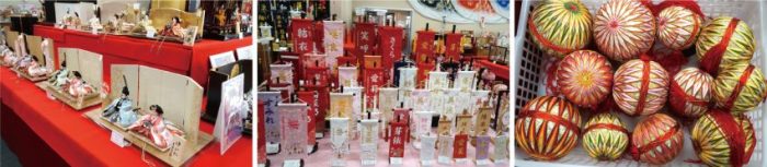 ひな人形を購入した人には、一針一針手でかがった錦糸のかわいい手まり(写真下)を進呈する。数に限りあり。