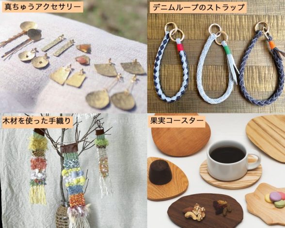 ㈱四川(しかわ、福山市加茂町)のデニム雑貨ブランド「PooLoce(プルス)」による「デニムループのストラップ作り」、岡山県在住のmaco.さんによる「木枠を使った手織りのもの作り」といったワークショップもある。