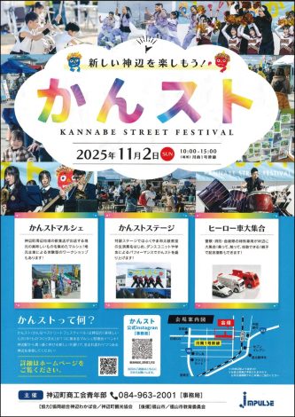 神辺町商工会青年部は11月2日10─15時、JR神辺駅西側の川南1号幹線周辺でイベント「かんなべストリートフェスティバル」(かんスト)を催す。人気の食品やものづくり企業が集う。