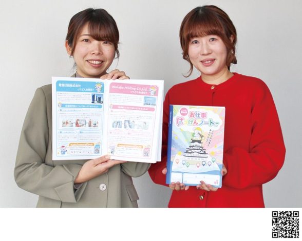 「教育支援効果に加え、企業認知度のアップや将来的な人材採用に結び付くことが期待できます」と同社マーケティングチームの藤原舞美さん=写真下右。同社が手掛けているオリジナルノートの制作事業や採用支援などのノウハウを生かして完成させる。