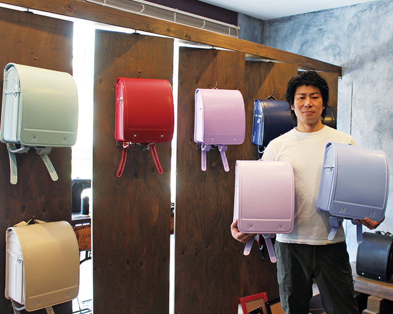 「宮本カバン店」(福山市今町2-18)の自社企画商品のオリジナルランドセルを、昨春から「白牡丹」(同市今町4-22)が継承して販売している。宮本のランドセルは飽きのこないシンプルなデザインが人気。問屋を通さずメーカーと直接やりとりして生産し、高品質・高機能ながら低価格で提供してきた。