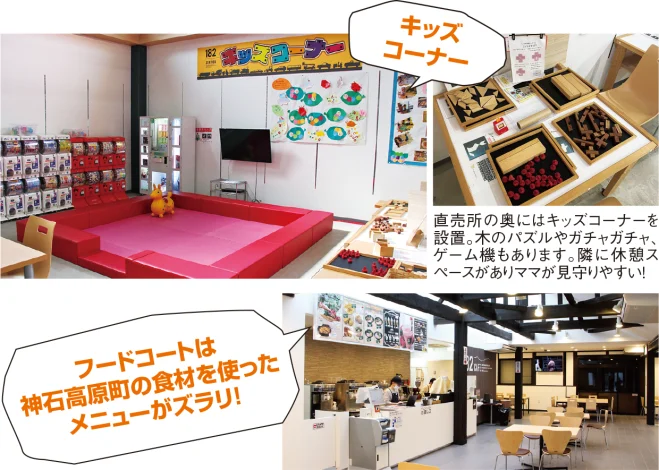 リニューアルで売り場を拡大。フードコートでは神石高原の魅力が詰まったメニューを多数用意[道の駅 さんわ182ステーション]