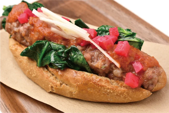 地元のパン屋「オオカミブレッド」の特製玄米パンではさんだ