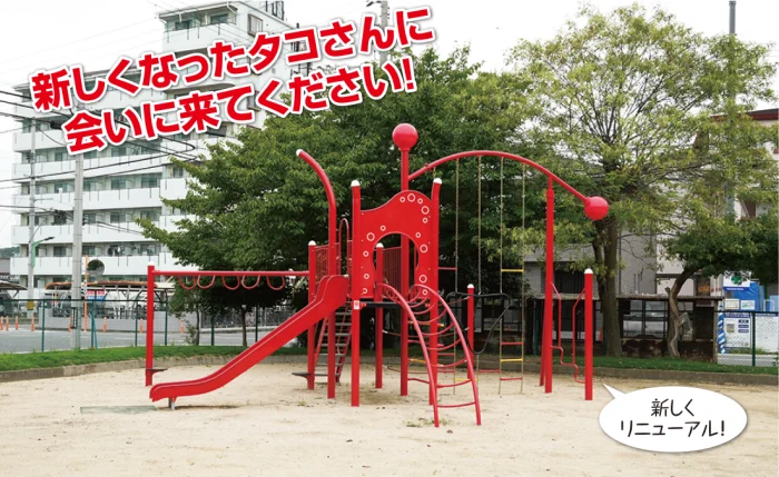 そして、遊具全体が赤いカラーなので、以前の真っ赤なタコさん遊具のイメージを引き継いでくれています!敢えてなのか、たまたまなのか?笑