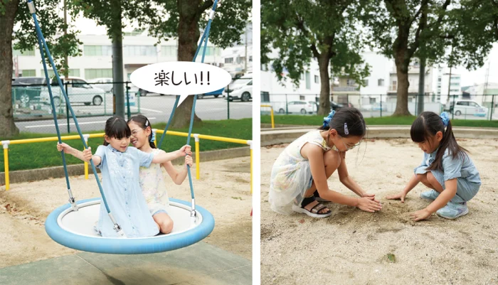 我が家の近所にはゆりかごブランコが無いので、娘達はゆりかごブランコがお気に入りでした!