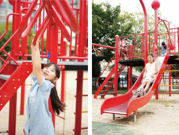 公園の近くには松永支所や図書館、郵便局、コンビニなどがあり、用事の合間に気軽に遊びに行けるので便利です。