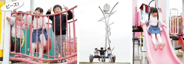 園内には大きな時計台もあり、大きい子に時間の概念を伝えやすいのもポイント。「長い針がここにきたら帰るよ」といった約束も視覚的に伝えられるため、帰り渋りを防ぐのにも役立ちます。