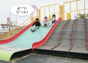 特に大人気なのは大きな滑り台。スピード感があり、大きい子たちは何度も駆け上がっては滑り降りて、思いきり体を動かして遊んでいました。見ているだけで元気をもらえます。