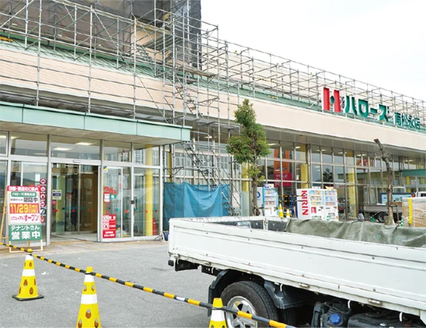 11月10日から改装工事に着手。店内と大型看板をリニューアルした。同じ敷地内には飲食店や携帯電話ショップなどが並ぶ。