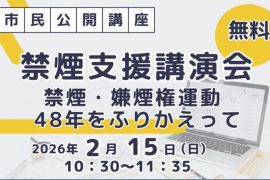 2月15日に福山市医師会館で 市民公開講座「禁煙支援講演会」 タバコ問題の先駆者・渡辺文学さん語る