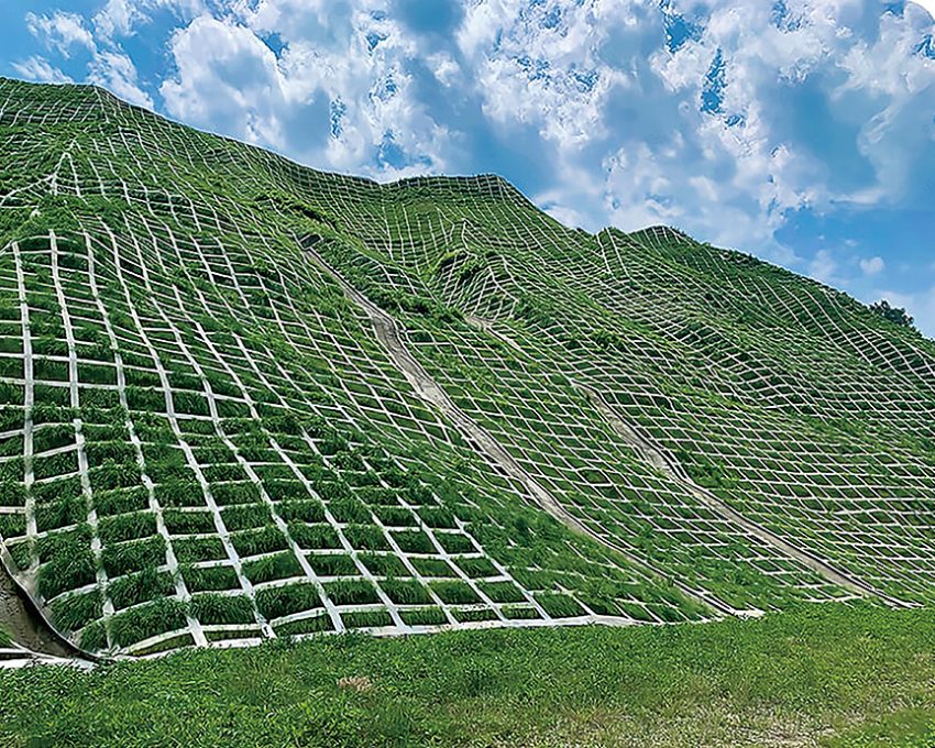 人工的に造られた傾斜面「のり面」の工事を得意にしている柏迫建設。一般的な道路整備のほか災害復旧に伴う工事として請け負うケースも多い。