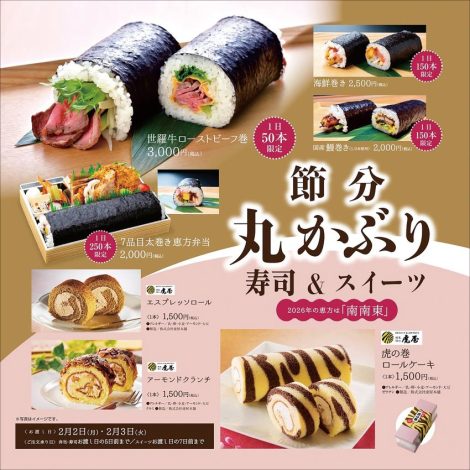 2026年は南南東に向かってガブリ! 節分に「丸かぶり寿司」をどうぞ 尾道国際ホテルが予約受け付け中