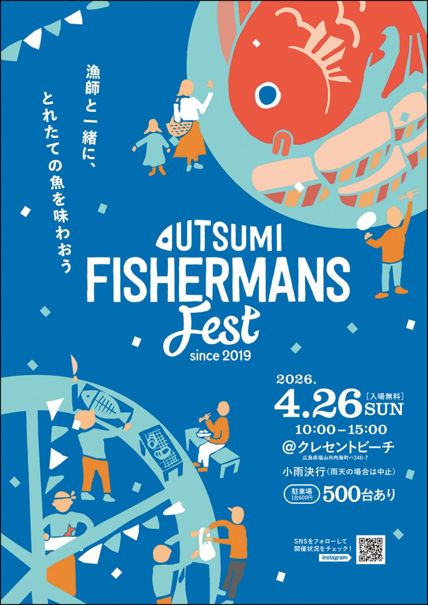 ANS FEST(ウツミフィッシャーマンズフェスト)2026」が4月26日10─15時、クレセントビーチ(福山市内海町ハ340-